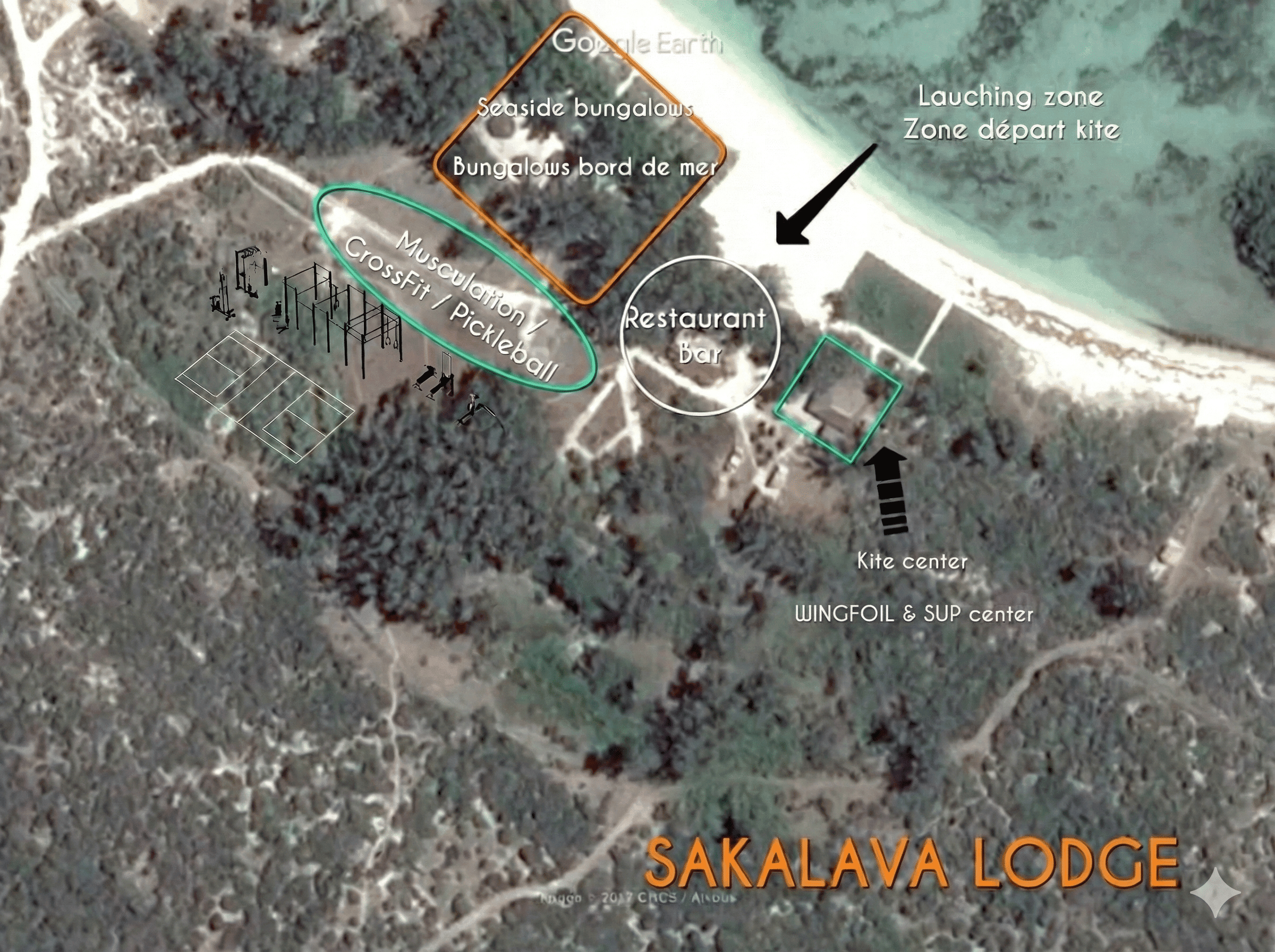 Depuis 1999, Sakalava Lodge est le pionnier des séjours kitesurf et wingfoil à Madagascar. Le lodge est implanté sur le meilleur emplacement de la baie : terrain de 5 hectares ombragé face au spot, accès direct, eau douce, accès voiture, et zone naturellement abritée du vent pour le confort à terre.